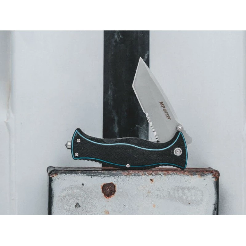 The Officer Folding Knife was custom designed by Smith & Wesson’s team of Law Enforcement and Security Officers. The 3.1″ tanto blade is partially serrated and has a bead blasted finish to reduce the wear and tear on the blade. Textured G10 handles provide a sturdy and lightweight grip that allows you to easily bring the knife to bear. The blade is quickly deployed with either the flipper tab or the dual thumb studs and is aided in this by their Ultra-Glide ball bearing system in the pivots. The textured G10 scales, an extra-large finger stop, and the Ultra-Glide bearing system make this knife perfect for personal or professional use.