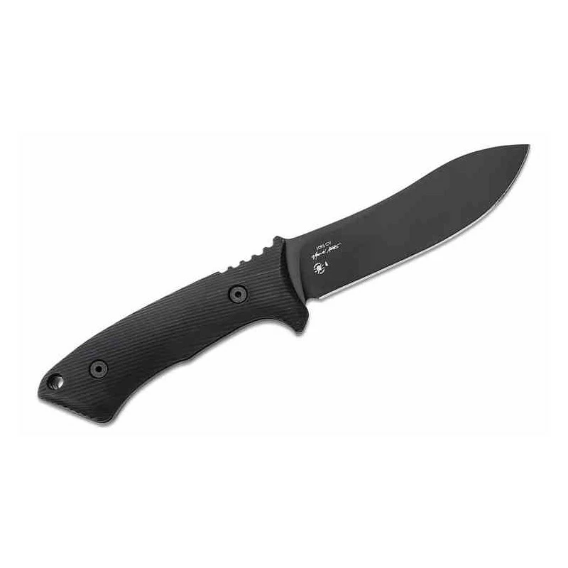 Couteau Tactical Survie Spartan Blades Harsey Nessmuk 1095 Black Blade Molded Handles Molded Sheath USA à lame fixe – Longueur totale 25.40cm – Longueur de lame 13.01cm – Epaisseur de lame 4.74mm – Lame en acier carbone 1095 – Dureté 56-58HRC – Lame de type American Nessmuk plain edge finition black – Construction d’une seule pièce – Full Tang – Affutage flat – Plaquettes du manche en Abs – Trou dans le manche pour dragonne – Etui Abs – Made In USA