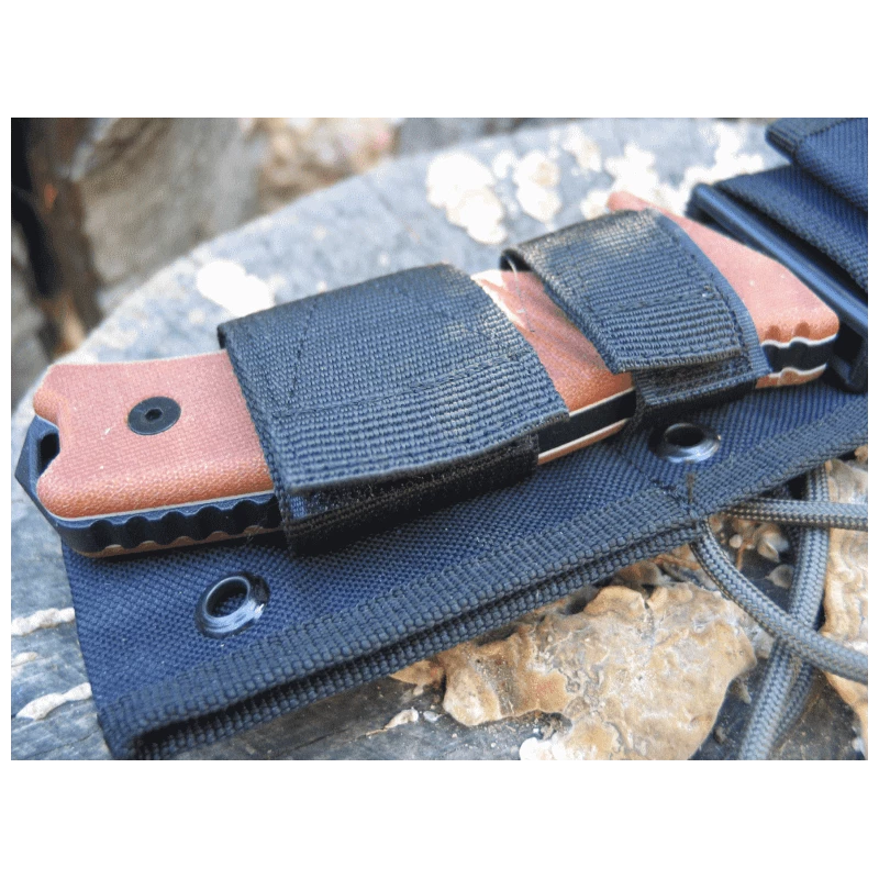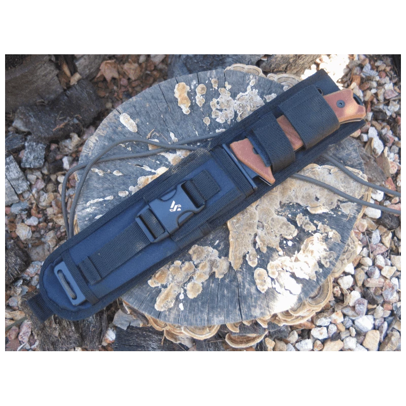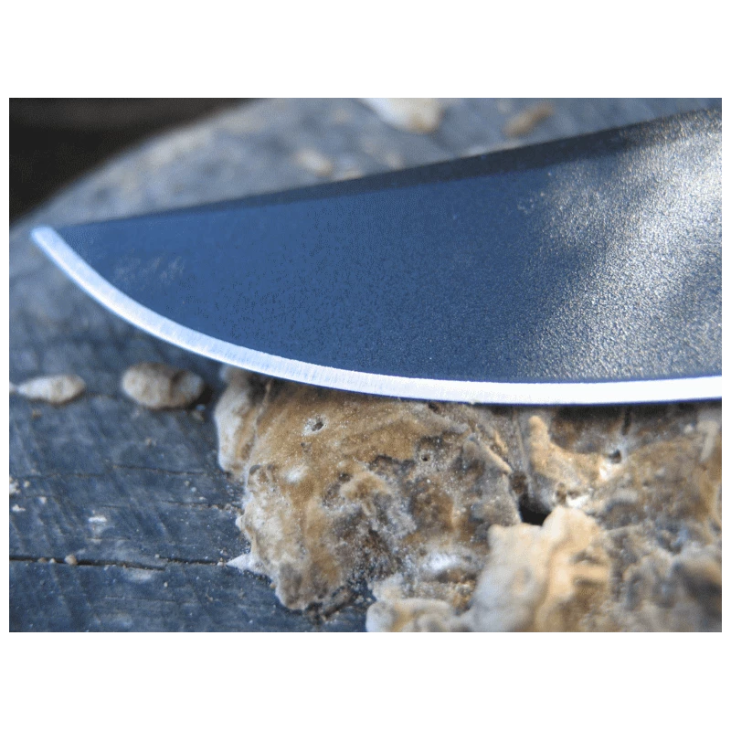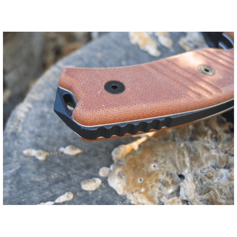 The Chieftain is a tactical knife with a classic clip point blade. It’s designed to be convenient to use with any grip, even with gloves. The thickness and strength of the steel and its full tang construction make it ideal for the toughest jobs. The blade is made from 1095 carbon steel, which is known to hold a keen edge and is easy to sharpen. The tang extends from the end of the Micarta handle to make a multi-purpose glass-breaker or hammer. The handles are made of Micarta, which is durable and moisture resistant. The Chieftain will appeal to buyers looking for a classic stealth option. Comes with a nylon sheath that allows for carry on a belt or tactical gear.