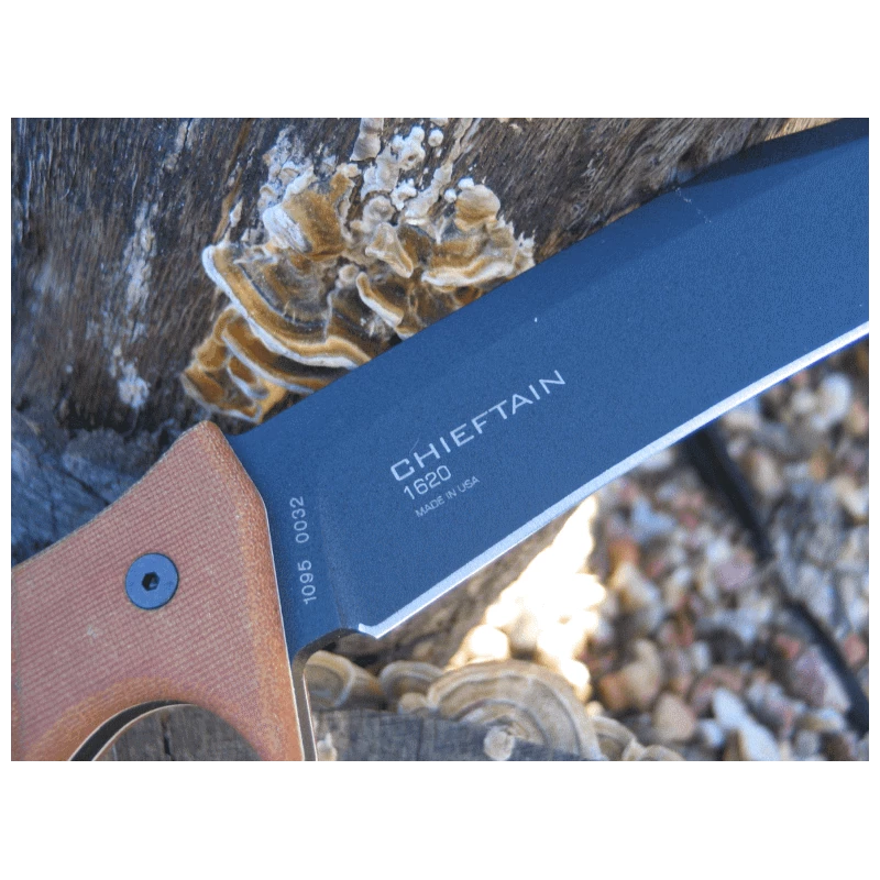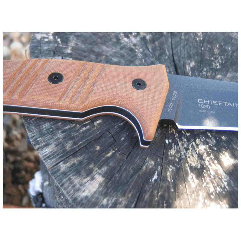 SMG1620 Steel Will Chieftain 1620 1095 Carbon Steel Blade Brown Micarta Handles Nylon Sheath Made USA