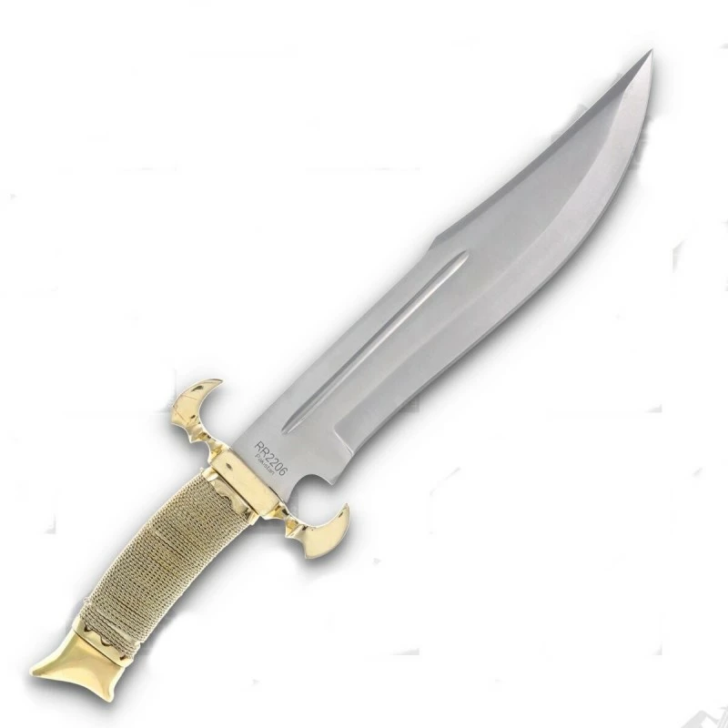 Couteau Style Médiéval Rough Ryder Bowie Wire Wrapped Manche Chainette Lame Acier 440 Etui Cuir RR2206 – Livraison Gratuite