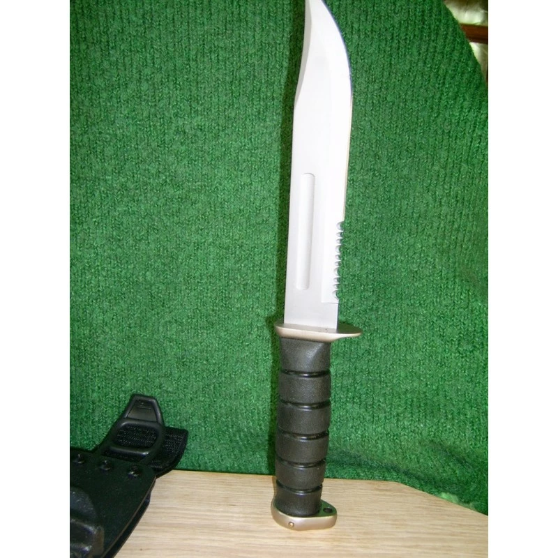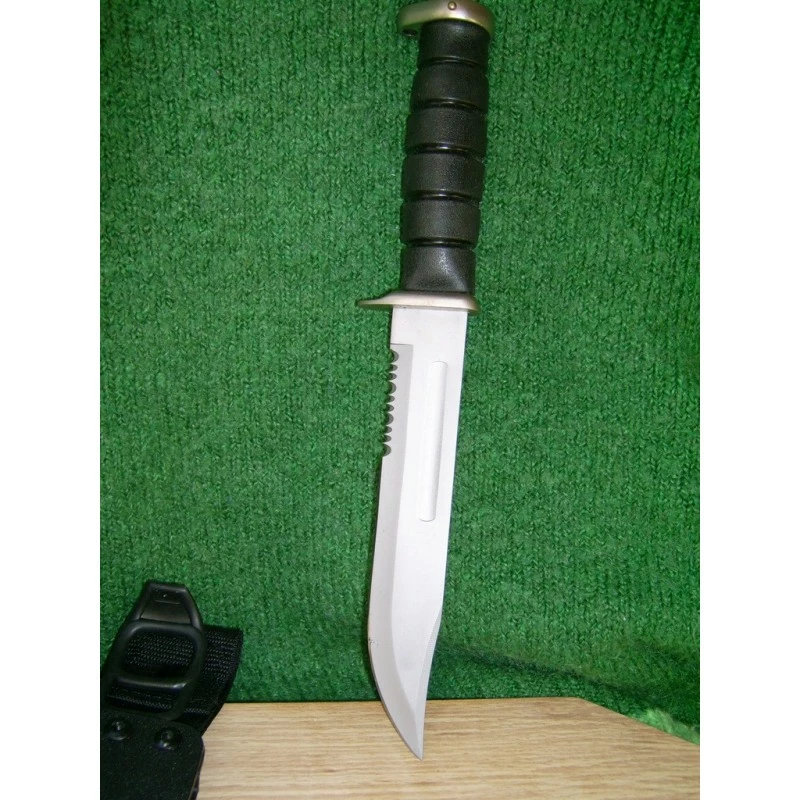 Couteau Tactical Frost Cutlery Combat Fighter I à lame fixe – Longueur totale 30.48cm – Longueur de lame 18.41cm – Lame en acier carbone/inox – Lame partiellement serrated – Garde & pommeau en métal – Manche en abs haute résistance – Etui rigide en fibre de nylon – Blocage de la lame dans l’étui et au niveau du pommeau – Couteau en vente dans les foyers militaire de Fort Bragg