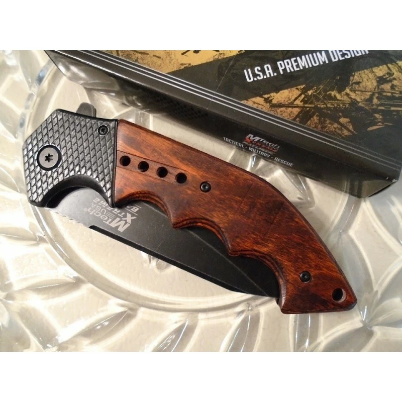 Couteau Tactical Mtech Xtreme Spring Assisted Acier 440C Manche Bois MTXA829BW – Livraison Gratuite