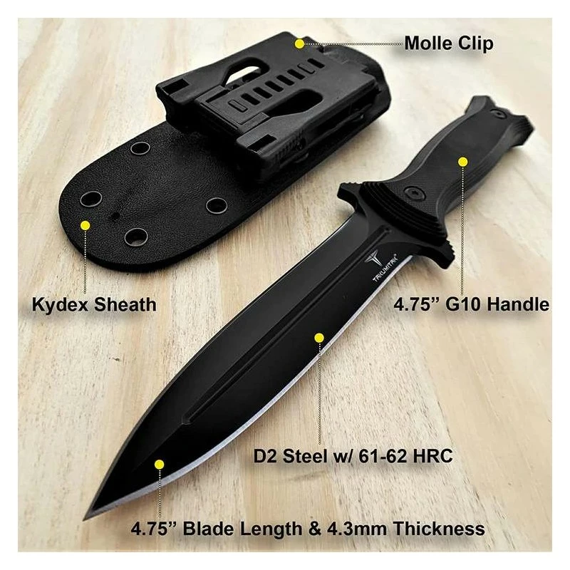 Couteau Takumitak HAVOC Dagger Black Military Lame Acier D2 Manche G10 Etui Kydex TKF202BK – Livraison Gratuite