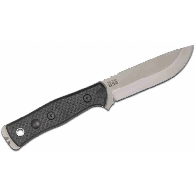 Couteau de Survie Tactical TOPS BOB Brothers of Bushcraft Fieldcraft 154CM Blade Black G10 Handles Kydex Sheath USA à lame fixe – Longueur totale 25.40cm – Longueur de lame 12.06cm – Epaisseur de lame 4.82mm – Construction d’une seule pièce – Full Tang – Lame en acier 154CM – Dureté 58-60HRC – Lame de type drop point plain edge finition 2 tons – Affutage scandi – Plaquettes du manche Black G-10 – Etui kydex – Allume feu & sifflet de détresse – Made In USA