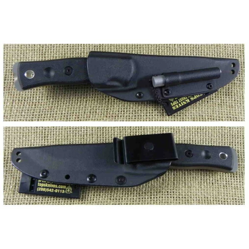 TPBROS154BLK10 TOPS BOB Brothers of Bushcraft Fieldcraft 154CM Blade Black G10 Handles Kydex Sheath USA
