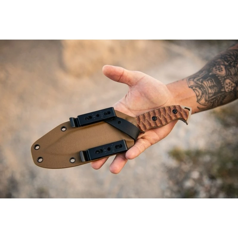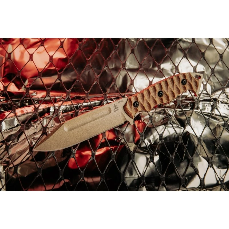 Couteau TOPS Knives M-PAT Tan Manche Micarta Lame Acier Carbone 1095 Etui Kydex Made USA TPMPAT01 – Livraison Gratuite