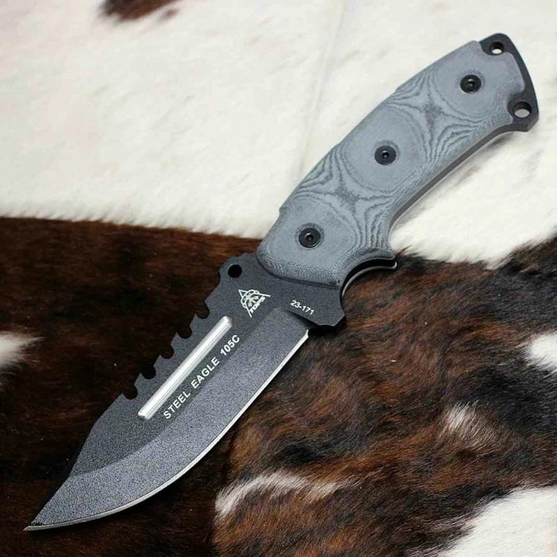 Couteau Tops Steel Eagle Hunter Point Saw Lame Acier Carbone 1095 Manche Micarta Etui Kydex Made USA TPSE105C – Livraison Gratuite