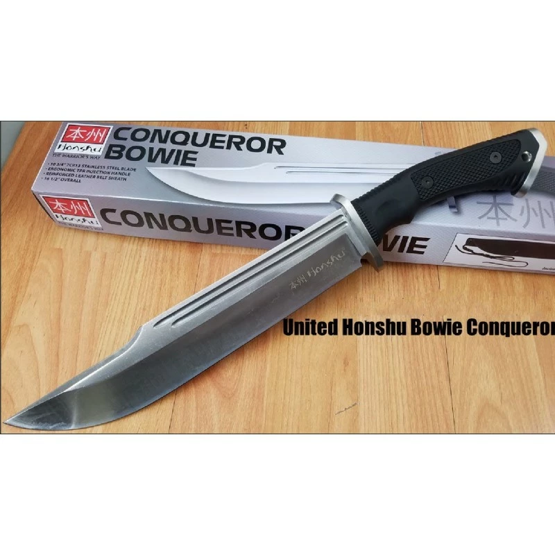 UC3321 United Cutlery Honshu Conqueror Bowie Knife 7CR17MoV Blade TPR Handle Leather Sheath