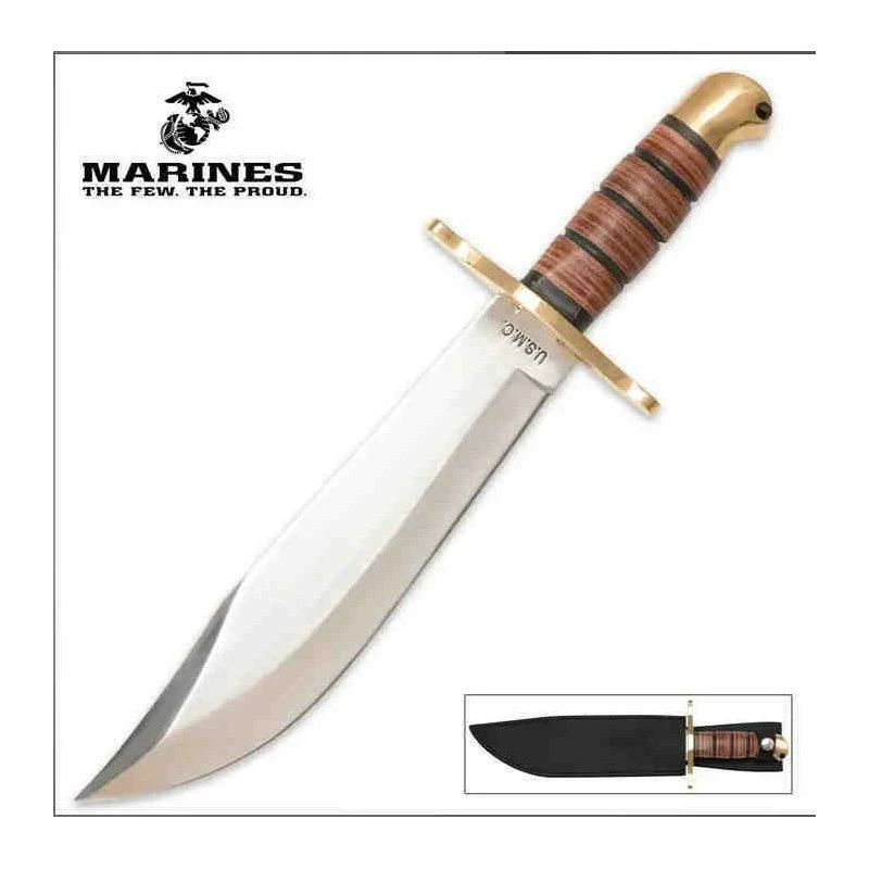 Couteau United Cutlery USMC Leatherneck Bowie Lame Acier Inox Manche Cuir Etui Cuir UCBK1817 – Livraison Gratuite