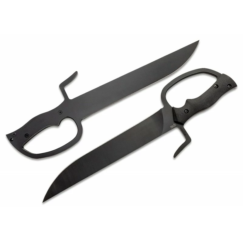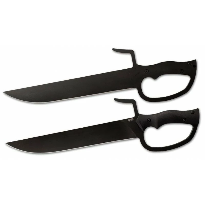 Couteaux de Combat APOC Butterfly Swords 9260 Seel Blade Black G10 Handle Kydex Sheath à lame fixe – Longueur totale 40.95cm – Longueur de lame 26.98cm – Epaisseur de lame 5.5mm – Lame de type drop point plain edge finition black – Lame en acier 9260 – Dureté 56HRC – Construction d’une seule piéce – Full Tang – Poignée garde en acier – Plaquettes du manche en G10 – Etui kydex