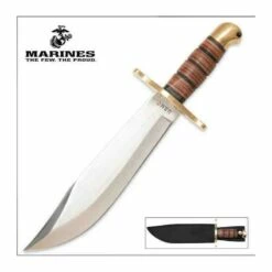 Couteau United Cutlery USMC Leatherneck Bowie Lame Acier Inox Manche Cuir Etui Cuir UCBK1817