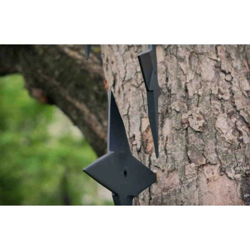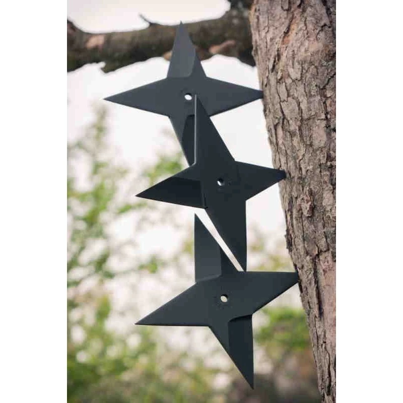 The Sure Strike is our interpretation of the classic Shuriken or throwing star. Used for centuries in China and Japan, the throwing star consists of a well-balanced piece of flattened steel with 3 or more sharp points. When thrown overhand like a baseball, side arm, underarm or back hand like a flying saucer, it hits on at least one point every time. Our Sure Strikes aren’t like the cheap, shoddy throwing stars you see at flea markets, guns shows, and in martial arts magazines. They are precision laser cut from high carbon steel and heat treated to a durable spring temper before sharpening. They are then treated with a black, baked-on epoxy finish to protect them from the rigors of the elements and repeated throwing. Available in three weight variations – Light, Medium and Heavy.