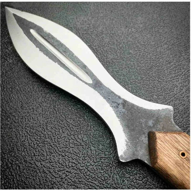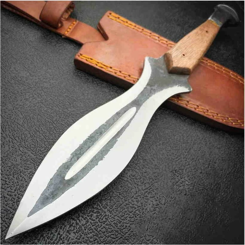 Dague Forged Leaf Hunter Railroad Blade Wood Handle Leather Sheath à lame fixe – Longueur totale 33.02cm – Longueur de lame 17.78cm – Lame de type Leaf – Lame forgée en acier carbone à partir d’un clou de rail – Construction d’une seule pièce – Full Tang – Plaquettes du manche en bois – Etui cuir