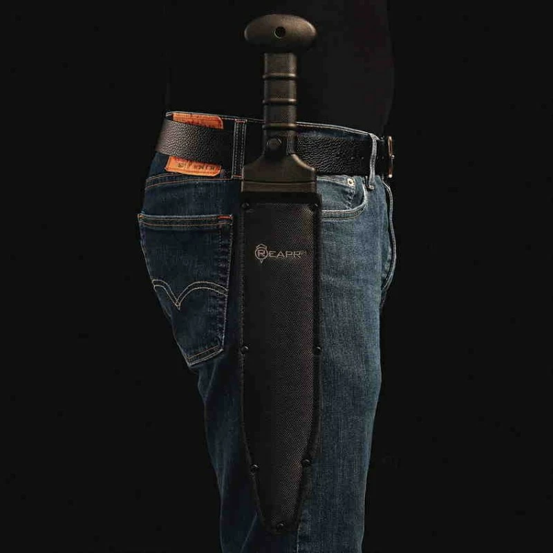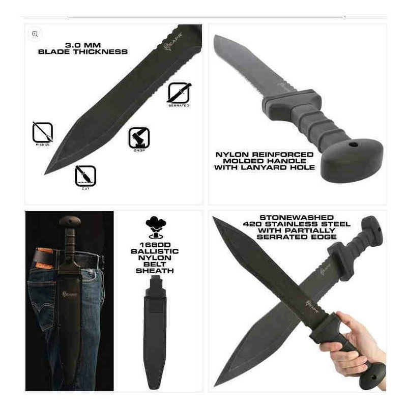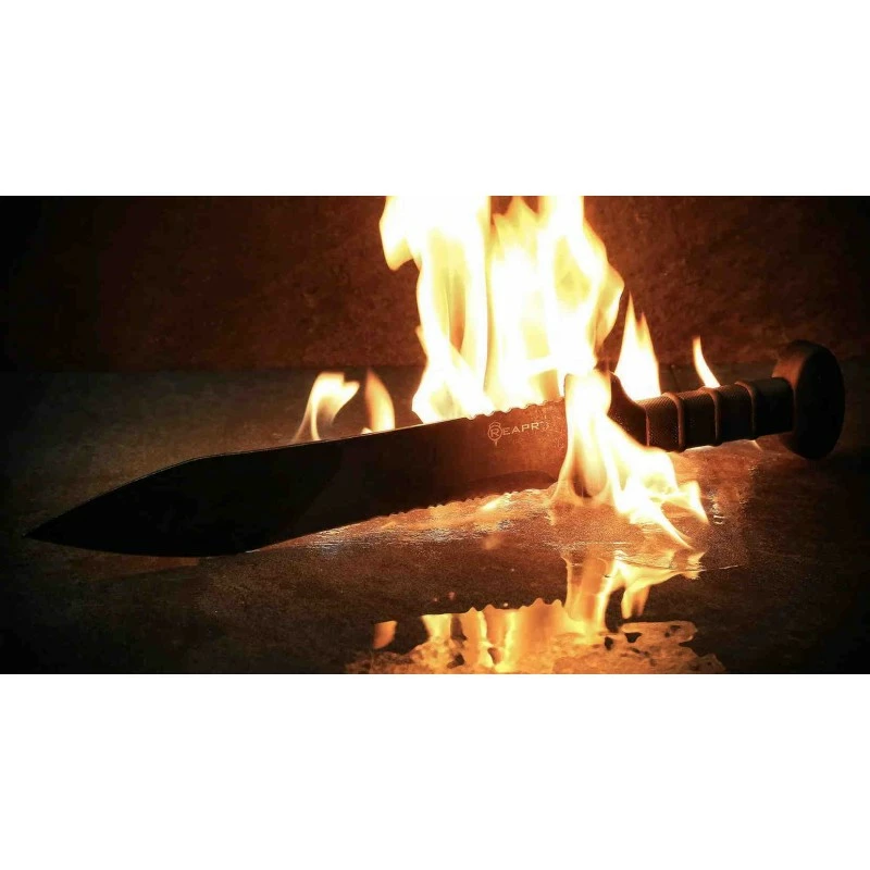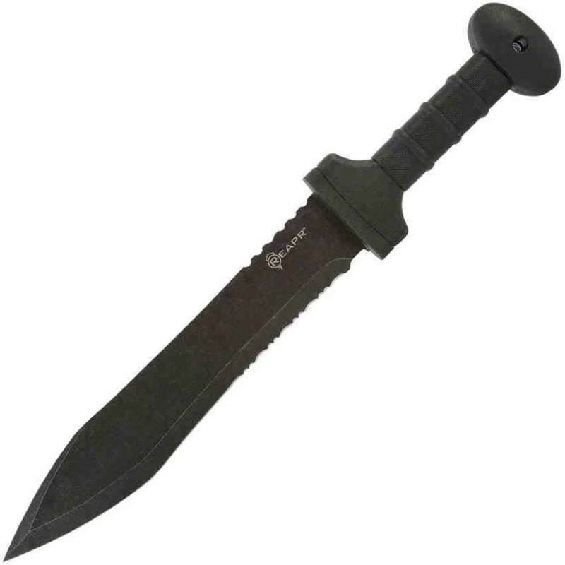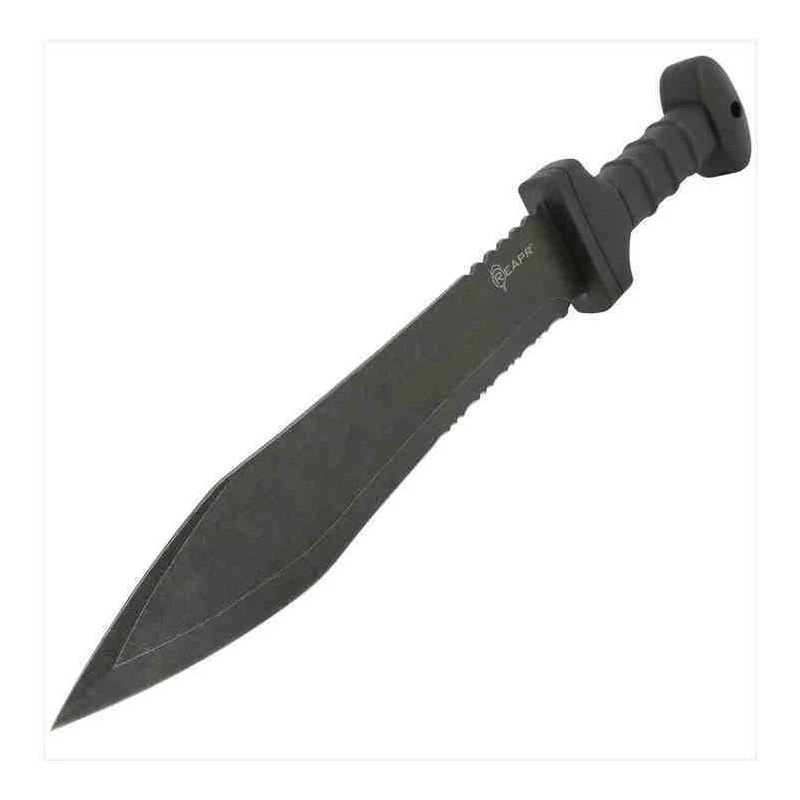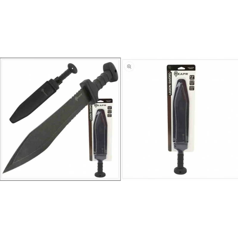 Glaive de Gladiateur Reapr Legion Sword 420 Blade Nylon Handle Nylon Sheath à lame fixe – Longueur totale 50.50cm – Longueur de la lame 33.02cm – Epaisseur de lame 3mm – Lame en acier 420 – Lame de type glaive partiellement serrated finition noire – Manche en Fibre de Nylon – Trou dans le manche pour dragonne – Etui nylon