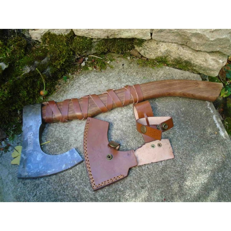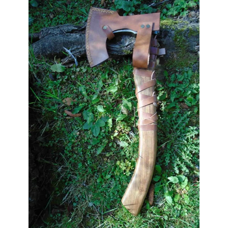 Grosse Hache de Viking Chef Harald Hardrada Lame Acier Carbone 1055 Manche Bois Etui Cuir Marbles MR617 – Livraison Gratuite