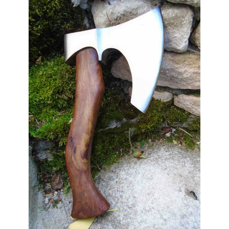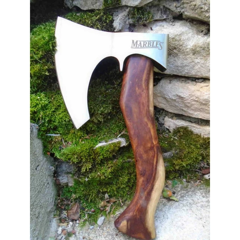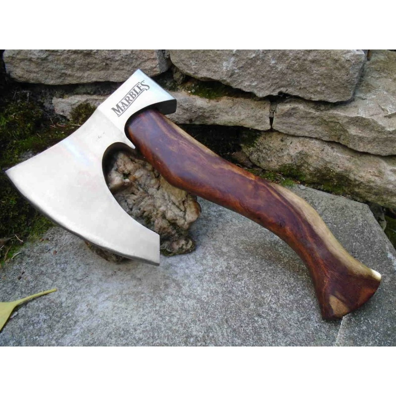 Hache de Viking Lame Acier Carbone 1055 Manche Bois Etui Cuir Marbles MR616 – Livraison Gratuite