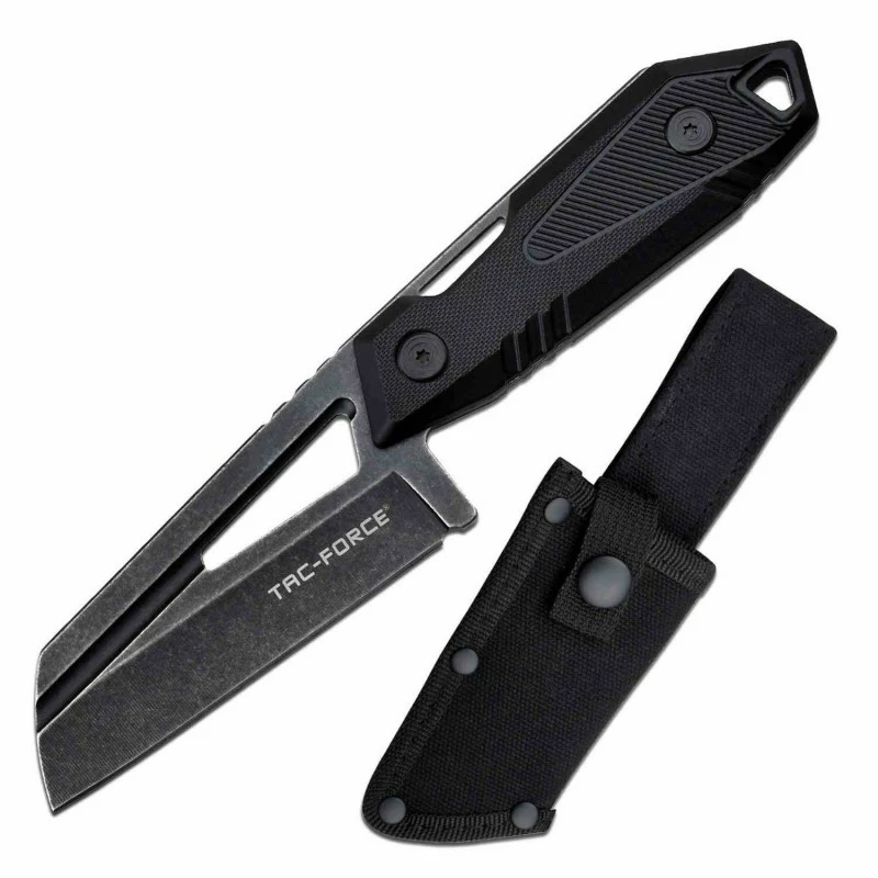 TFFIX021BK Tac Force Cleaver Black 3CR13 Blade Nylon Handle Black Canvas Sheath