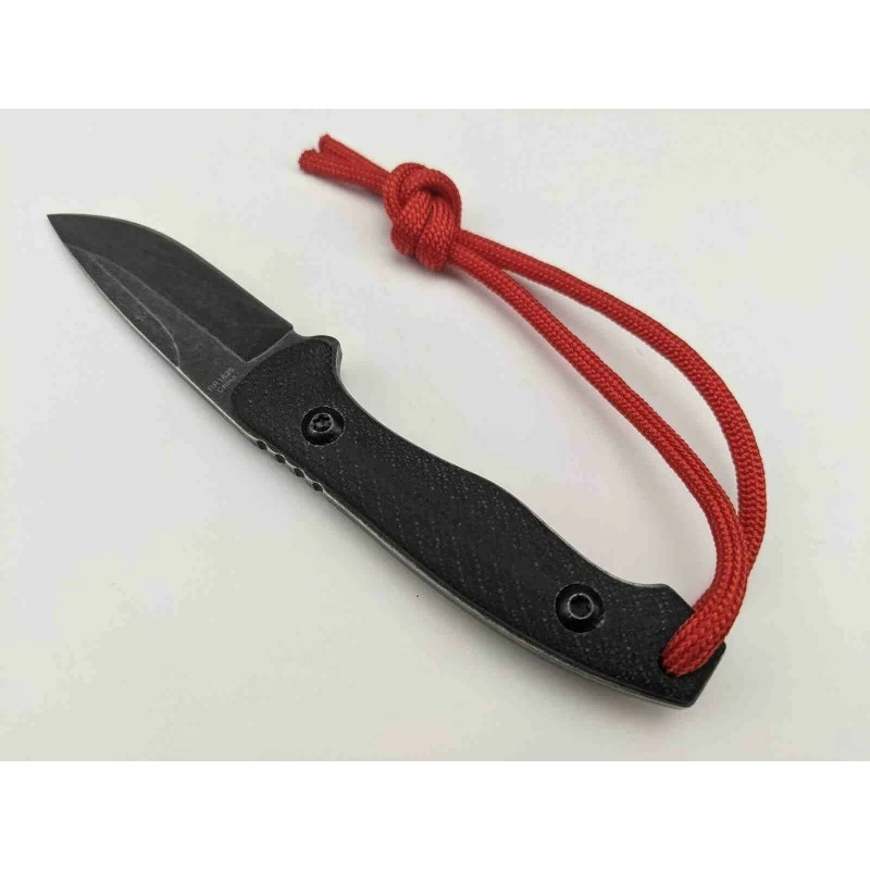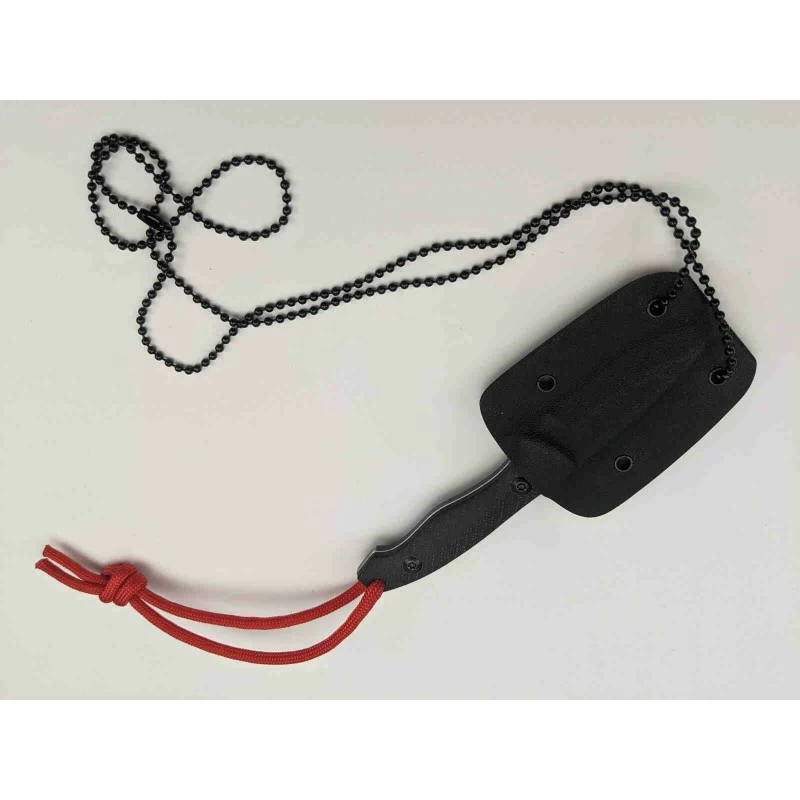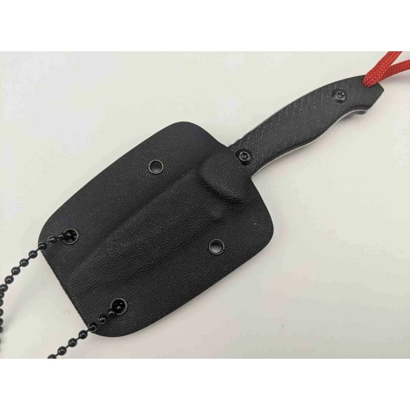 12.39cm overall. 5.08cm black stonewash finish 440 drop point blade. Black G10 handle. Full tang. Lanyard hole. Black Kydex neck sheath. Boxed.