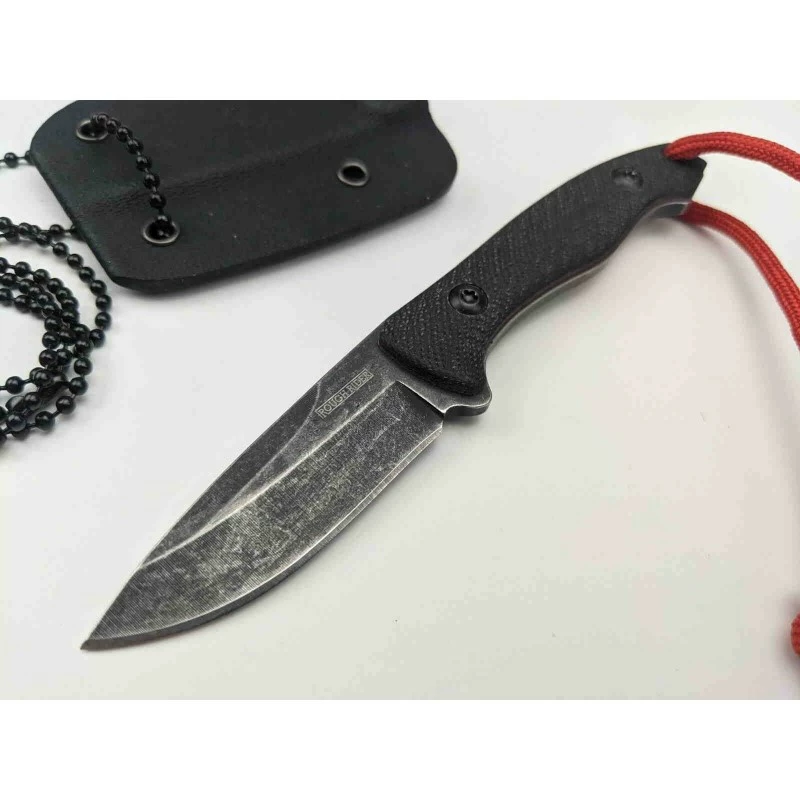 Couteau EDC Rough Ryder Neck Knife 440 Blade G10 Handle Kydex Sheath à lame fixe – Longueur totale 12.39cm – Longueur de lame 5.08cm – Lame de type drop point plain edge finition stonewash – Construction d’une seule pièce – Full Tang – Lame en acier 440 – Plaquettes du manche en G10 – Trou dans le manche avec dragonne – Etui kydex avec chainette