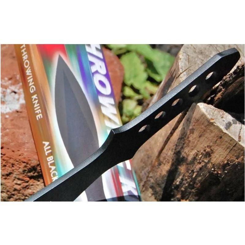 2 Couteaux de lancer Black – Construit d’une seule pièce – 4MM Epaisseur – Excellente prise en main – Couteau avec teinte epoxy black – Housse en nylon – Longueur totale : 21.50 cm