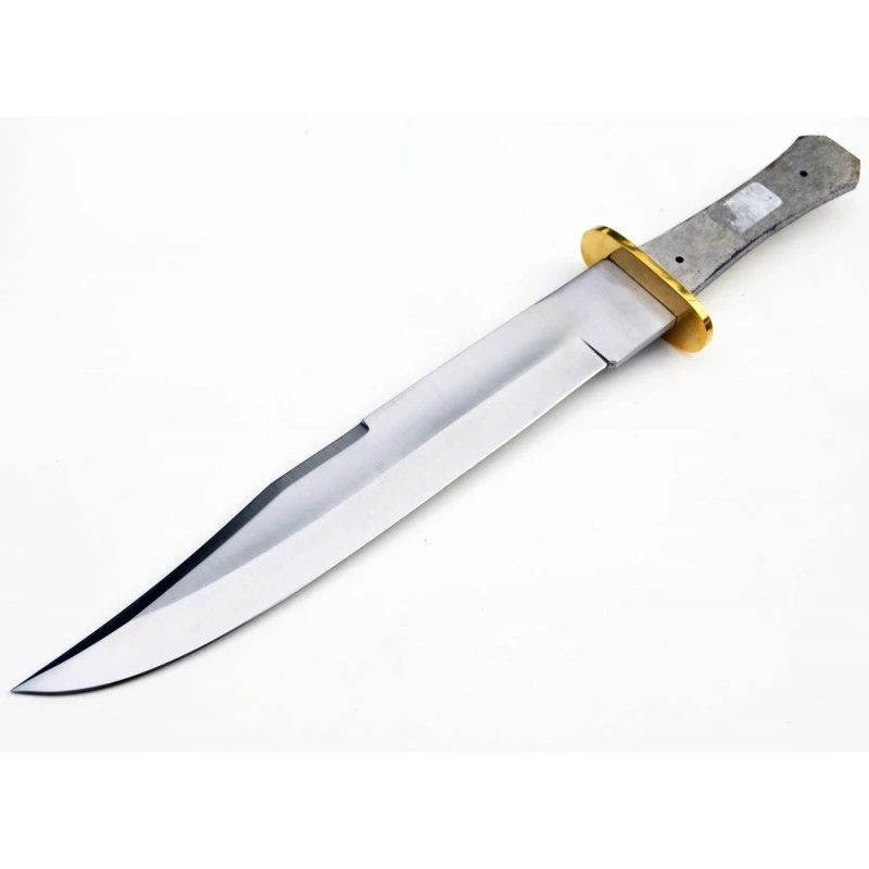 Lot de 2 lames de poignard, bowie, couteaux de chasse à lames fixes – Longueur totale 38.10cm – Longueur de lame 22.22cm – Construction d’une seule pièce – Full tang – Lame de type clip point plain edge finition satin – Lame en acier inox – Garde en laiton