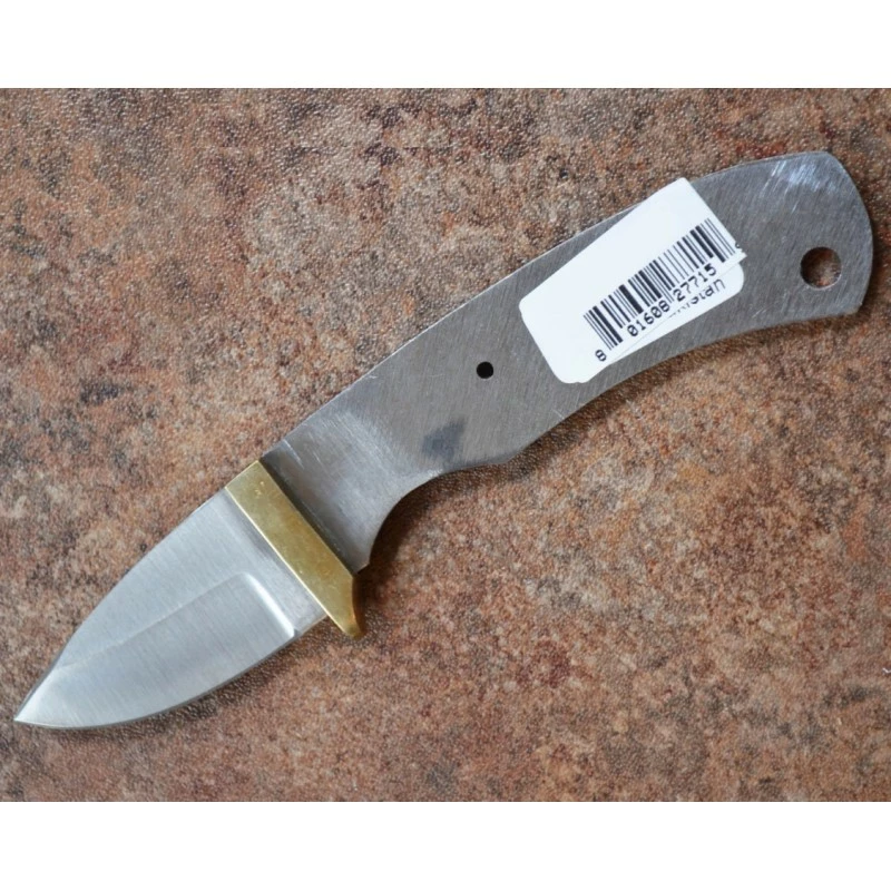 15.87cm overall. 5.39cm stainless drop point blade. Full tang. Brass finger guard. Lanyard hole. Bulk packed.