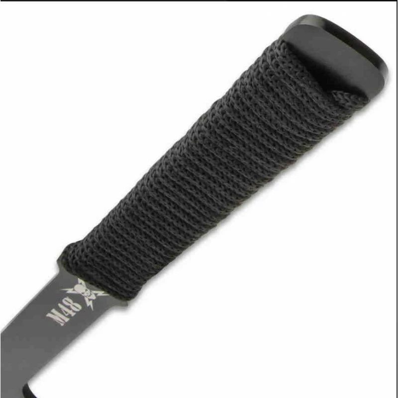 The M48 Pro Throwing Axe Set will allow you to throw just like a professional with each of the three axes perfectly balanced in weight and design. Each axe has a 13.33cm wide, black 3Cr13 stainless steel head with a 6.35cm blade and a penetration point on the back side. The full-tang handles are wrapped in black cord for a comfortable, slip-free grip, allowing you to throw with ease. Each of the 27.30cm overall axes can be housed in the included 1068D nylon sheath for carry and to protect the blades.
