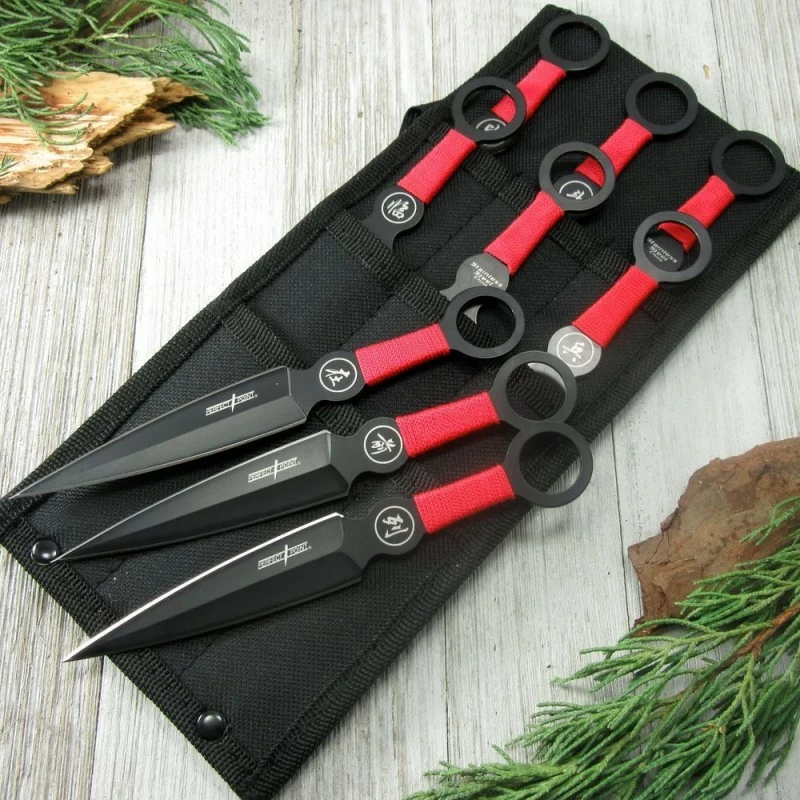 Lot de 9 Couteaux de Lancer de Ninja Perfect Point Throwing Lame Acier Etui Nylon M4504 – Livraison Gratuite