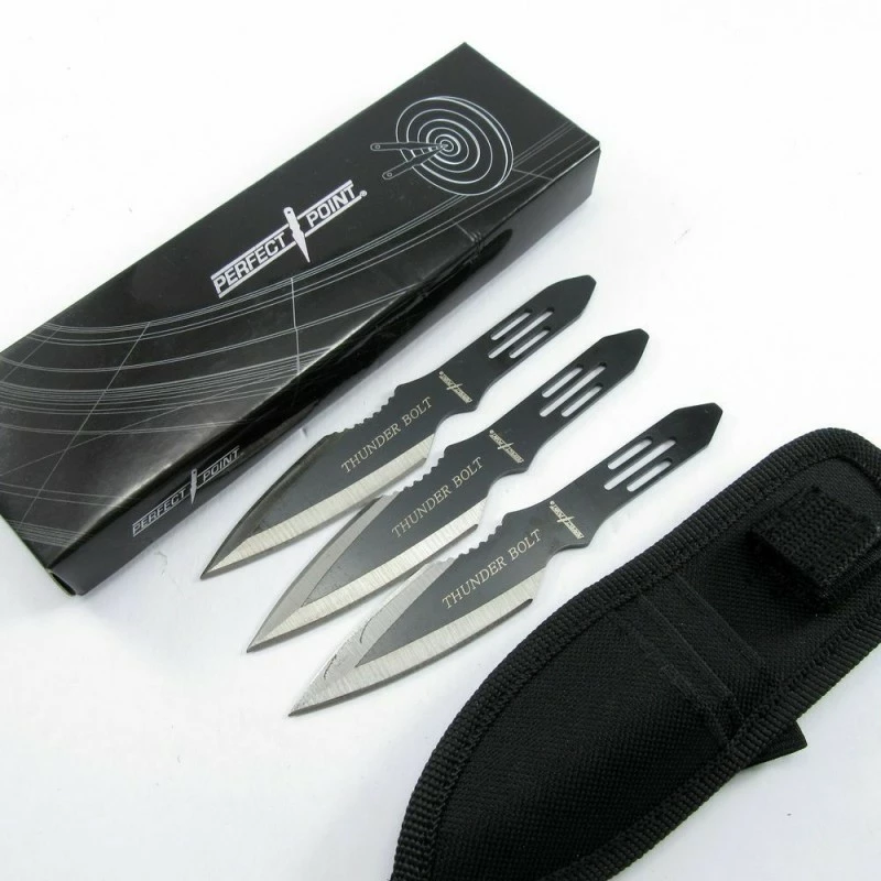 M4503 Lot de 3 Couteaux de Lancer Perfect Point Throwing Black Acier Inox Etui Nylon – Livraison Gratuite
