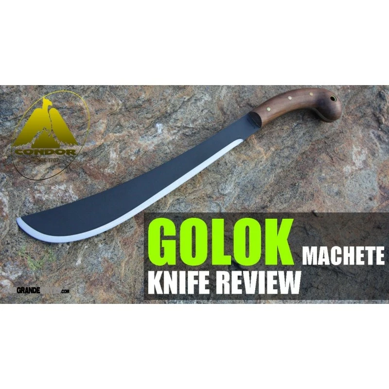 Machette Condor Golok Machete à lame fixe – Longueur totale 51.43cm – Longueur de lame 36.19cm – Construction d’une seule pièce – Full Tang – Lame en acier carbone 1075 – Plaquettes du manche en bois – Etui Cuir – Made In El Salvador