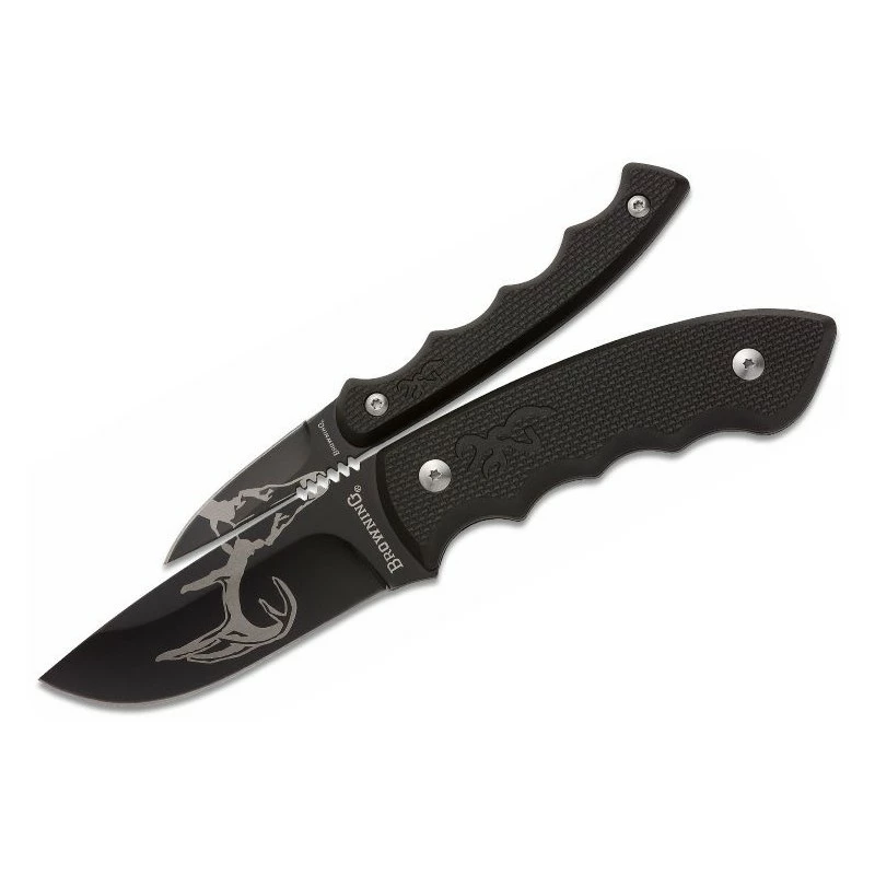 BR0302 Browning Primal Knife Combo Set 9Cr Blade Black Polymer Handle Nylon Sheath