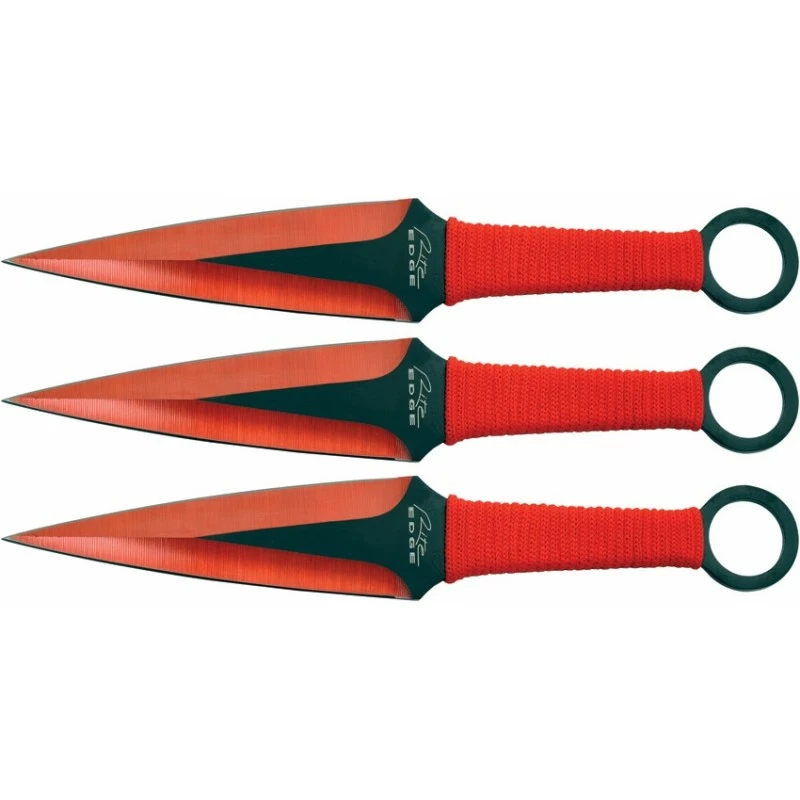 CN211537RD Rite Edge 6 Kunai Thrower Set Red Stainless Blade Red Cord Handle Nylon Sheath